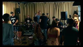 Το live με τις δύο μπάντες πάει να ακυρωθεί λόγω χαλαζιού και βροχής αλλά τελικά όλοι μπαίνουν μέσα στην τζαμαρία και με ένα μικρό PA και μία κονσόλα αλλά άπειρη όρεξη για μουσική.